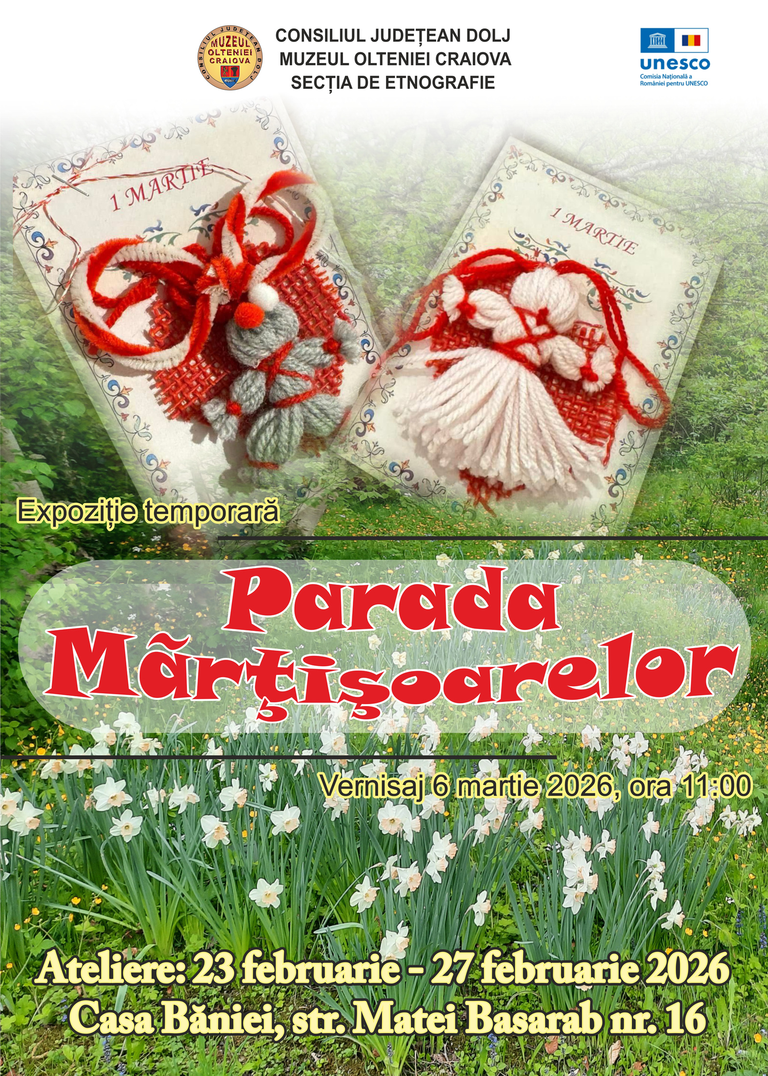 Intrată în obișnuința publicului craiovean, Expozița Parada Mărțișoarelor continuă să experimenteze prin formele sale diverse de manifestare, să surprindă publicul, iar Muzeul Olteniei are onoarea de a premia și promova instituţiile de învăţămant doljene care se înscriu în cadrul proiectului cultural propus de către specialiștii Secției de Etnografie, pentru a afla povestea unui meșteșug intrat în patrimoniul UNESCO în anul 2017, pentru a reconstitui împreună legenda firului alb şi roşu, agăţat odinioară în copacii înmuguriţi sau purtat de copii și fete ca bănuţ protector la mâini sau la gât pentru a le purta noroc și a le aduce sănătate.